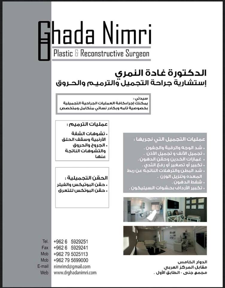 اختصاصية جراحة التجميل والترميم مستشفى البشير - سابقاً